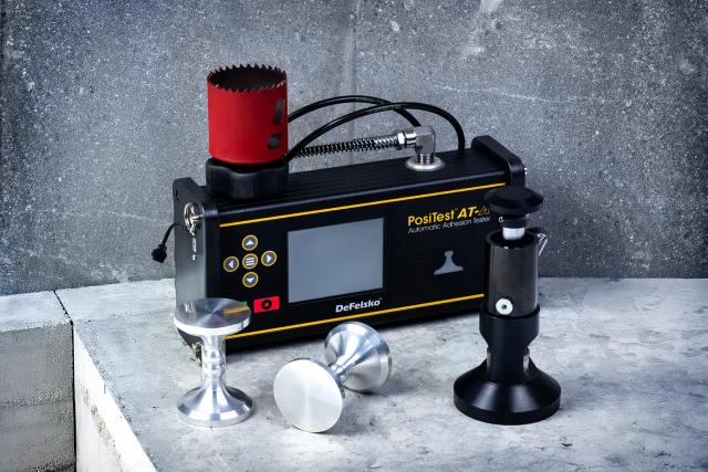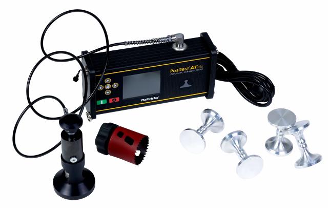 PosiTest AT-A Automatic fra Defelsko er et komplet trækprøveapparat til 50 mm dollies som sikrer meget præcis og stabil trækprøvning af vedhæftningsstyrke på overflader.