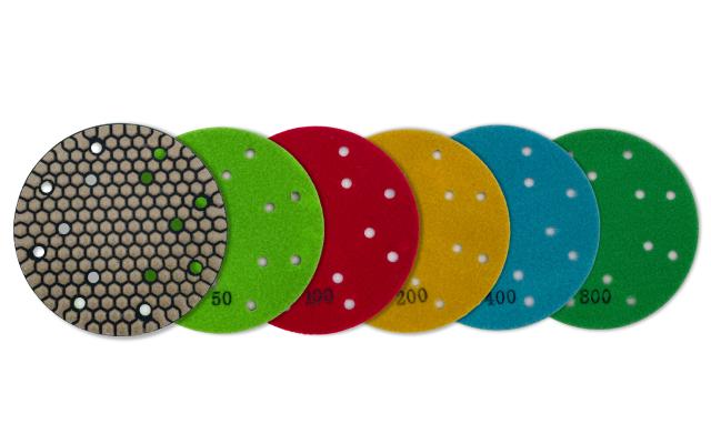 Til tørslibning og -polering af marmor, terrazzo, granit, beton, etc.